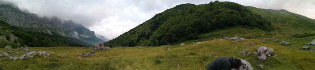 Randonnée depuis le refuge de Labérouat non loin de Lescun. Couchage en tente proche d'une bergerie. Première nuit en tente sous un léger brouillard. Nous ne voyons pas le paysage qui nous entoure. Quelle joie au petit matin d'apercevoir Jean Pierre. En fait, Anie dort tout proche de Jean Pierre :)...quel beau couple pyrénéen!!